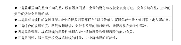 表1 制定戰(zhàn)略路線必須遵守一些基本的判斷準(zhǔn)則